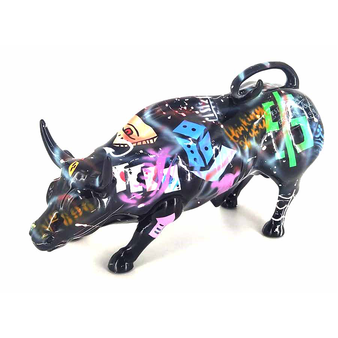 Ett handmålat konstverk med inspiration av popart och casino. Denna dekorativa statyett i form av en tjur är tillverkad för hand i harts och stenpulver, där varje exemplar är noggrant numrerat och signerat. Med sin färgstarka design blir den ett konstnärligt statement i hemmet eller galleriet.