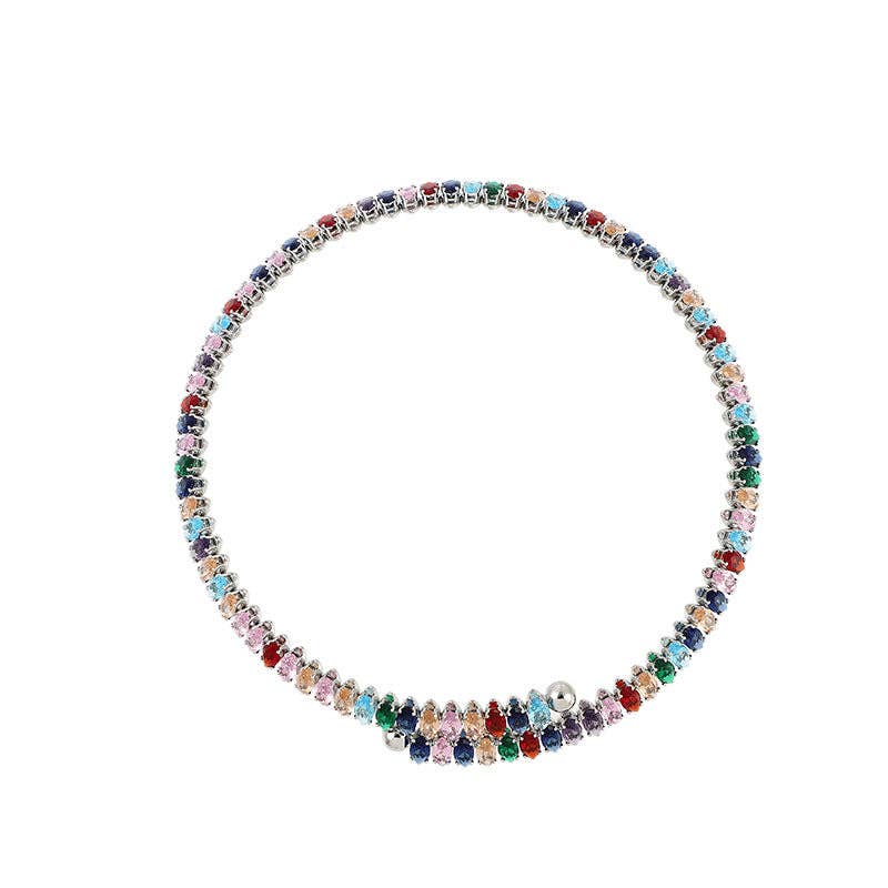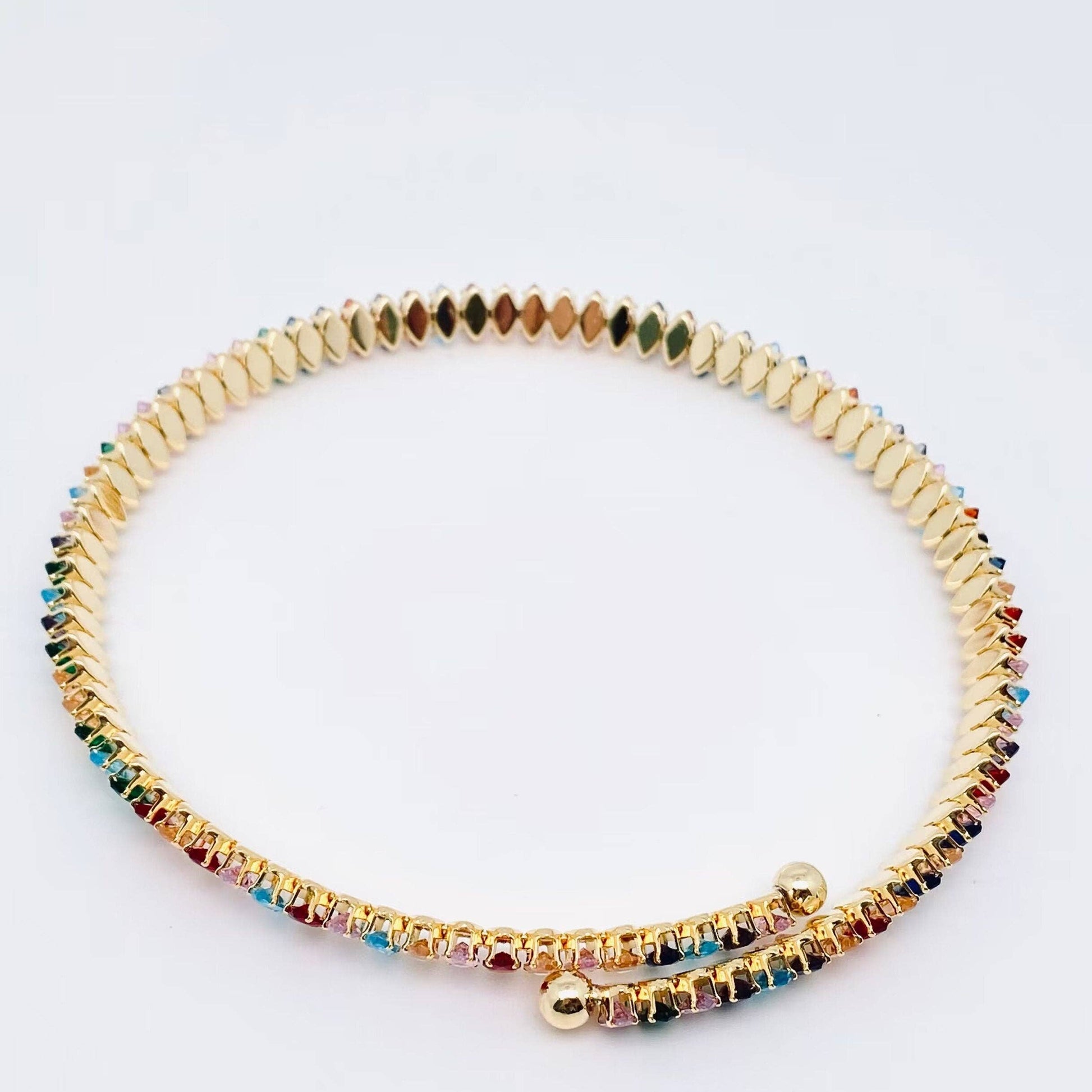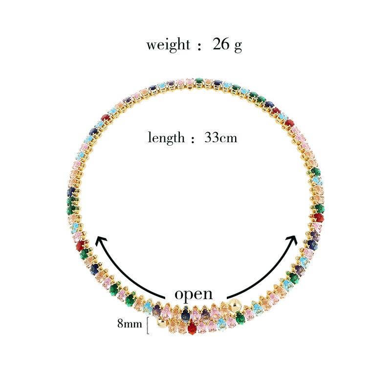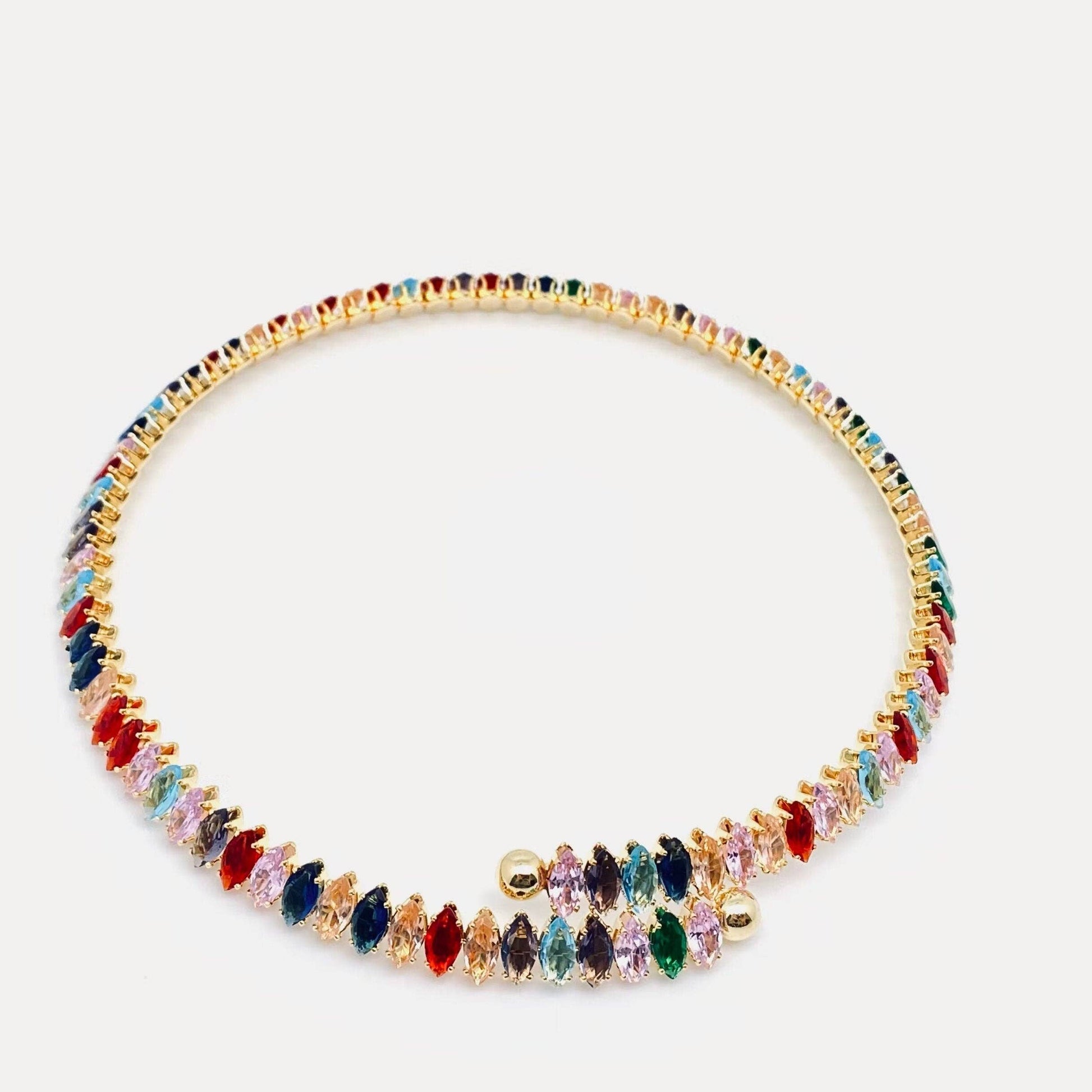En fantastisk guldpläterad elastisk krage, prydd med inlagda färgade kubiska zirkoner.