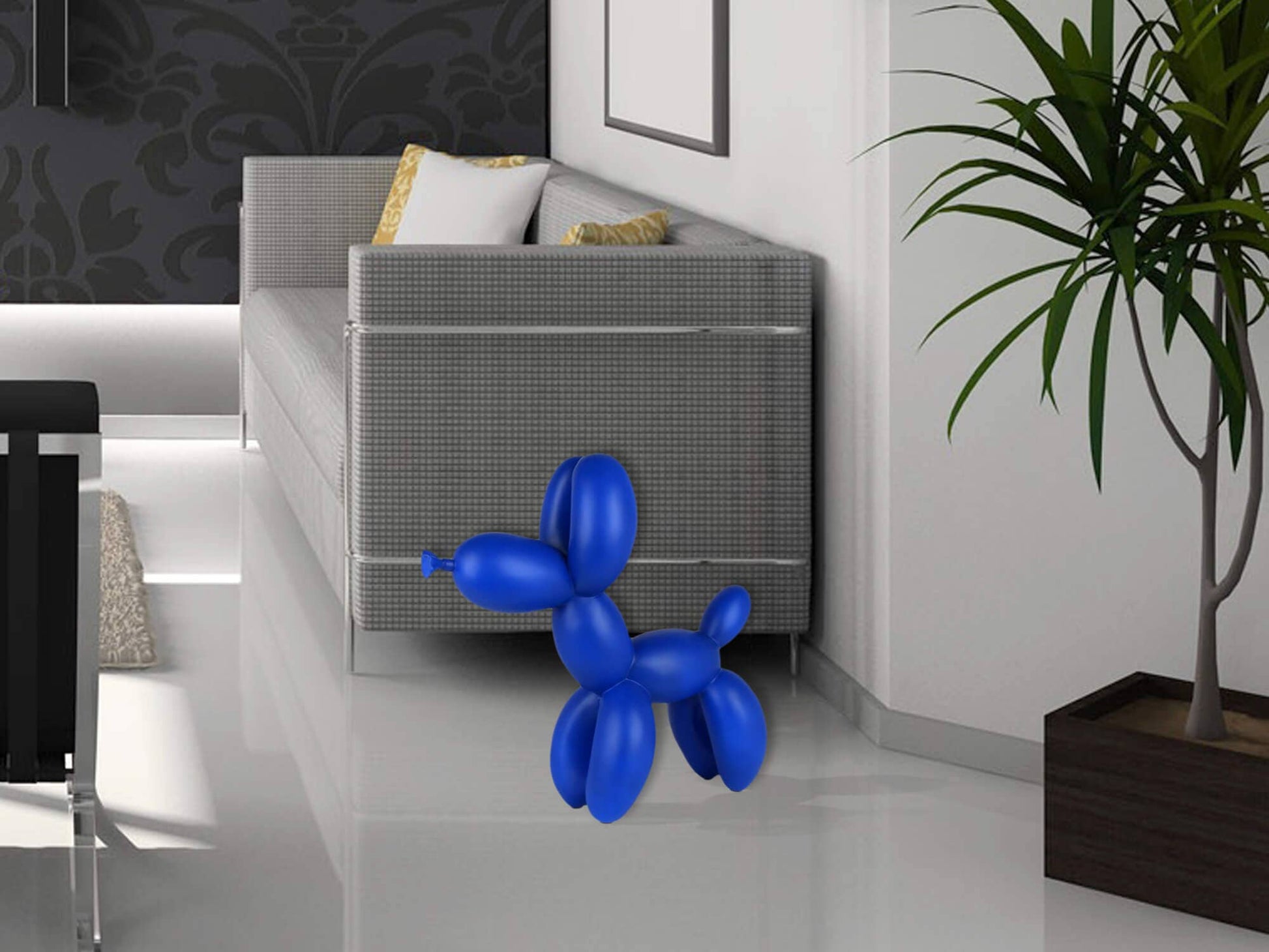 Denna stora ballonghund-skulptur i popkonststil är handgjord och dekorerad i orange för hand, vilket ger varje exemplar en helt egen prägel. Tillverkad i lackerat harts, är denna skulptur en modern och färgstark detalj som adderar personlighet och elegans till alla inredningsmiljöer.